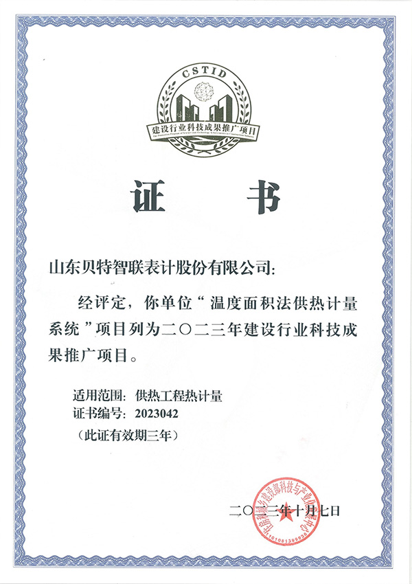 溫度面積法住建部推廣證書