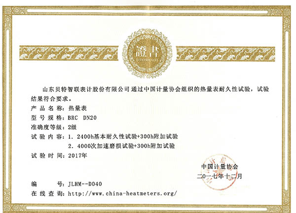 熱量表耐久性試驗證書