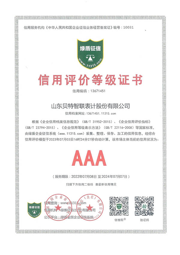 AAA級信用等級評價證書